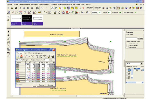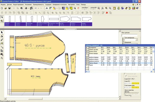 Создание базы данных таблиц градации и размерных шкал, дает возможность легко менять систему градации изделия. Это делает систему гибкой при производстве рабочей и форменной одежды.