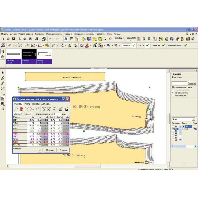 В процессе создания новых моделей и коллекций, GEMINI PATTERN EDITOR – среда для проектирования, в которой идеи превращаются в формы, в виде точно построенных и проверенных лекал.